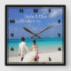Tropical Beach Themed Wedding Couple Square Wall Clock