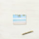 Sticky notes with a landscape photograph of a tropical beach. Warm sand, azure water and blue sky with tropical leaves along the top. Personalise with your names and wedding date and location. Or other text which suits your purposes.