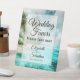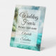 This pretty tabletop sign is designed will invite your wedding guests to take a wedding favor. It features a simple yet elegant design with beautiful script lettering on a scenic watercolor landscape of a tropical beach with pristine sands, palm trees, and turquoise water. The sign reads: Wedding Favors, Please Take One! There is room for your names and the wedding date below.