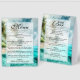 These two sided table tent signs will make it easy for your guests to see the food and drinks menu. The front has the dinner menu while the back displays the bar or drinks menu. The design features a watercolor beach landscape with palm trees and pristine turquoise waters. Perfect for a coastal or island destination wedding.