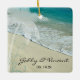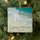Create a keepsake gift for the newlywed bride and groom when you personalise the pretty Tropical Beach Wedding Ornament. This custom beachy marriage ornament features a scenic nature photograph of a turquoise or aqua blue ocean on the white sand shore with a palm tree and swirl design adorning the corner. Perfect to commemorate a casual yet classy island destination or tropics wedding theme.