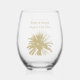Tropical beach wedding palm tree silhouette custom stemless wine glass