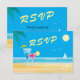 This colourful, destination wedding RSVP is accented with a bright sun, seagulls, blue water, and a couple of tropical drinks. The type gives this RSVP a retro feel, and keeps it fun and playful, making it perfect for the beach, Caribbean, Hawaiian, seaside or tropical wedding. Scroll down to see the rest of the collection, and if additional coordinating items are needed, just contact us at prettyfancyinvites@gmail.com with your request.