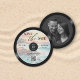 Set the tone for your wedding with this Music Wedding Save the Date designed to look like a vintage vinyl record, with a romantic, tropical beach watercolor background. Perfect for a beach wedding for musicians, music lovers, and retro-inspired weddings, this unique round invitation features classic record-style details, musical notes, and a stylish electric guitar accent. Whether you're planning a rock & roll wedding, jazz-themed celebration, or festival-style event, this design captures the magic of music and love. Easily personalise with your wedding details and get ready to dance your way to "I do."