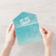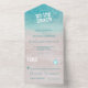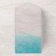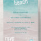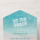 Tropical Beach Wedding Watercolor All In One Invitation. A simple watercolor rendering of a tropical beach with pinkish-white sand and turquoise waters serves as the backdrop for this stylish and modern wedding invitation. The bold, distressed typography gives the design an edgy look. Your guests can detach the RSVP card and mail it back to you.