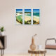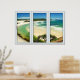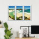 The artwork creates the illusion of having a window in your room. The illusion makes you feel as though you're looking out at a tropic beach of of green water and white sand..