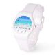 A custom watch with a scenic tropical beach. A gorgeous turquoise sea in the distance and crystal clear waters caressing a sandy beach. A bright blue sky in the background. Personalise with a name.