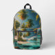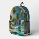 Tropical Beach With Rainbow And Palm Trees Printed Backpack