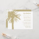 Tropical beige palm tree beach wedding invitations. Tropical invites for summer destination wedding. Elegant invitation template for your beach wedding. Customisable text and paper quality. Classy script typography. Colour of leafs can be changed into any sandy beachy colour or pastel. Printed on two sides.