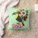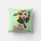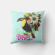Tropical Bird Pillow. Vintage style girly throw pillow with fully customizabe neon colours text "Tropical Bird" colourful flowers and a toucan bird. A beautiful stylish tropical birds floral flower design gift!
