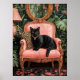 Tropical Black Cat on Sofa Poster Print, Funny Bla