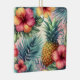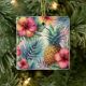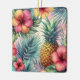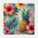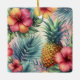A lively and colorful tropical pattern featuring ripe pineapples nestled among lush teal palm leaves and vibrant hibiscus flowers in shades of red, pink, and orange. This design captures the essence of a tropical paradise, blending exotic flora with a fresh, summery vibe.