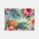 A lively and colorful tropical pattern featuring ripe pineapples nestled among lush teal palm leaves and vibrant hibiscus flowers in shades of red, pink, and orange. This design captures the essence of a tropical paradise, blending exotic flora with a fresh, summery vibe.