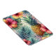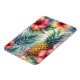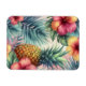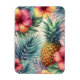 A lively and colorful tropical pattern featuring ripe pineapples nestled among lush teal palm leaves and vibrant hibiscus flowers in shades of red, pink, and orange. This design captures the essence of a tropical paradise, blending exotic flora with a fresh, summery vibe.