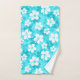 Tropical Blue and White Hibiscus Flower Pattern Bath Towel Set