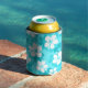 Tropical Blue and White Hibiscus Flower Pattern Can Cooler