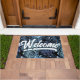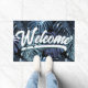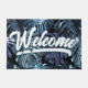 Tropical Blue Black Palm Leaves Welcome Doormat
