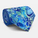 Stylish neck tie with a tropical feel done in blue, with graphics of a Batik floral look, on the bottom. Customise to add text to this colourful tie. Great for weddings or every day use.