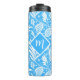Tropical Blue Floral Pattern Diamond Monogram Thermal Tumbler