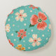 This plush pillow features a lively array of flowers burst forth against a soothing aqua backdrop. Vivid reds, soft pinks, and cheerful yellows intersperse with delicate foliage, creating a whimsical scene. The playful dotted accents enhance the overall light-hearted feel, inviting a sense of joy and freshness into any setting.