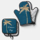 Tropical Blue Gold Glitter Palm Tree Oven Mitt & Pot Holder Set