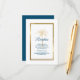 Provide your guests with all of your wedding reception details with this tropical enclosure card featuring modern script, ocean blue text including an artistic golden palm tree and metallic gold frame on the front of the card. A coordinating ocean blue background is on the back.