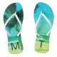 Tropical Blue/Green Beach & Palm Tree Initial Flip Flops