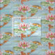 A soft light blue colour background highlights my watercolor koi fish and pink lotus - water lily in a stylised fish pond. The water seems to shimmer in bands of blues and greens. Beautiful tropical or oriental themed fabric for crafting, clothing or decor. Elegant and trendy contrasting colours of teal, orange and pink. Original artwork & design by Tuzi Williams.
