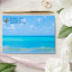 Envelopes decorated with tropical blue water image. A brown starfish, or sea star, on the front is next to the return address template. Text is printed blue and aligns to the top to use 3 or 4 lines as needed. The flap has some beach sand and inside is a starfish pattern. Use for any tropical or summer event.