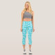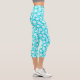 A beautiful pattern of tropical hibiscus flowers in shades of blue with white on custom, women's capri leggings.. The bright colours of hibiscus in my own garden inspired me to create this design. These cute and comfortable leggings are great for relaxing in, workouts, or anytime you want a tropical vibe. Their shorter pant length makes them perfect for spring and summer. This pattern can be resized to make the flowers large or small so it's just right for you!