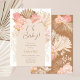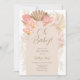 Oh Baby, a boho inspired baby shower invitation, a perfect design for your neutral color boho baby shower theme. Featuring pampas grass, dried palms, pink florals and earthy hues. Click now to customize.