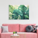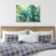 A lush canvas featuring oversized tropical leaves in shades of emerald green, set against a light cream background. This vibrant botanical artwork infuses spaces with freshness and a touch of nature.