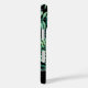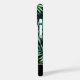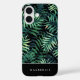 Tropical chic phone case features vibrant green botanical jungle foliage on a black background for an elegant island-style look. Personalise with your name or monogram along the bottom in modern white lettering on a band of crisp black.