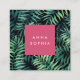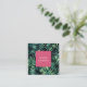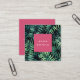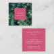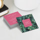 Elegant business cards with a chic tropical island vibe feature a background of vibrant green jungle botanical leaves. Personalise the front with your name or business name, and add your full contact information to the back in modern white lettering on a bright pink background.