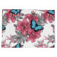Hand -drawn bouquet of tropical flowers, palm leaves and butterflies