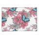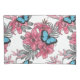 Hand -drawn bouquet of tropical flowers, palm leaves and butterflies