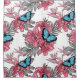 Hand -drawn bouquet of tropical flowers, palm leaves and butterflies