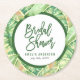 This Tropical Bridal Shower round coaster features tropical green watercolor leaves with the word "Bridal Shower" in green. It's perfect for a tropical bridal shower. Check out matching items like invitation, stickers and stamps here https://www.zazzle.com/collections/green_watercolor_leaves_tropical_collection-119860212866787344?rf=238364477188679314