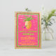 Tropical bridal shower invitation with pretty pineapple and hibiscus flower on a beautiful hot pink, lime green and gold foil background with string lights. This luau soiree bridal shower invitation is easily customised for your event by simply adding your details in the font style and wording of your choice. This is a printed design with no real foil, glitter, etc.