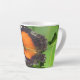 The sun is beating down on green jungle foliage. A beautiful tropical butterfly comes to rest on the leaves and stretches out its wings to catch the sun's rays. The deep orange, black and white of the wings stand out against the lush green to create an eye-catching, unique tropical butterfly photo image.
