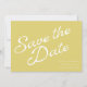 This bold yet minimal save the date features flowing white script typography on a lively tropical chartreuse citrus butter yellow background. Its playful retro feel and clean composition make it perfect for modern couples planning a fresh, sun-kissed celebration. This save the date sets a joyful, creative tone for a wedding that feels both stylish and full of life.