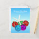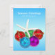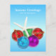 Blue tropical Christmas postcard with starfish and ornaments. All text is easy to customise for any holiday greeting. Back is lined for ease of addressing.