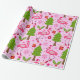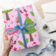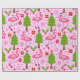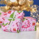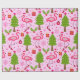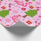 Tropical Christmas Flamingo With Pine Tree on Pink Wrapping Paper