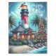 Whimsical Tropical Christmas Lighthouse Teal Red