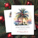 This festive tropical Christmas moving announcement card features a Palm tree adorned with Christmas ball ornaments. The card is perfect for sending to friends and family during the holiday season to let them know about your new address while also incorporating your love of the tropics. The front of the card features the Christmas tree with beach shells and the saying "Holiday Greetings from our new home sweet home" The overall design is festive and unique, and the card is sure to put a smile on the faces of your loved ones.