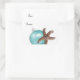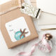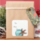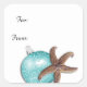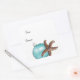 Tropical Christmas gift tag stickers. Starfish and ornament, blue and brown design, on round, white sticker. Black "for" and "from" text can be changed or deleted. Choose either size sticker.