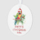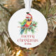 This festive tropical Christmas-themed design features- Merry Christmas -beautiful red retro typography with a tropical Christmas bird in a Santa hat.