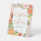 Bridal shower Cards & Gifts pedestal tabletop sign. This tropical citrus design features modern elegant fonts (easily change the colours!) and a bouquet of blush florals and tropical citrus fruit including lemon, lime, orange, grapefruit, and papaya! . See the entire collection for more matching items!