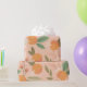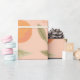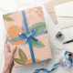 Wrap gifts in style with this wrapping paper, featuring a colourful illustrated pattern of oranges, tropical flowers, and leaves on a light pink background.