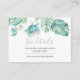 Designed to coordinate with my coastal wedding collection, this elegant seaside guest details card features a top border of my watercolor monstera palm leaves and sea turtle in shades of blue, turquoise and green. Below is your wedding website details on a small 3.5x2 business card size. Add your custom text using the fields provided and use the Customise function to adjust fonts, sizes and spacing. To see matching designs visit DoTellABelle Invites on Zazzle